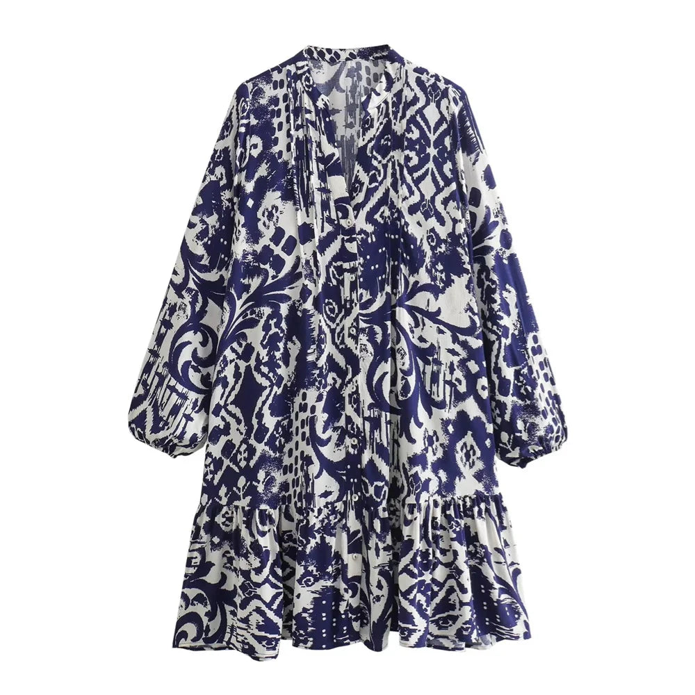 Damen - Kleid - V-Ausschnitt - Lange Ärmel - Locker - Alle Jahreszeiten